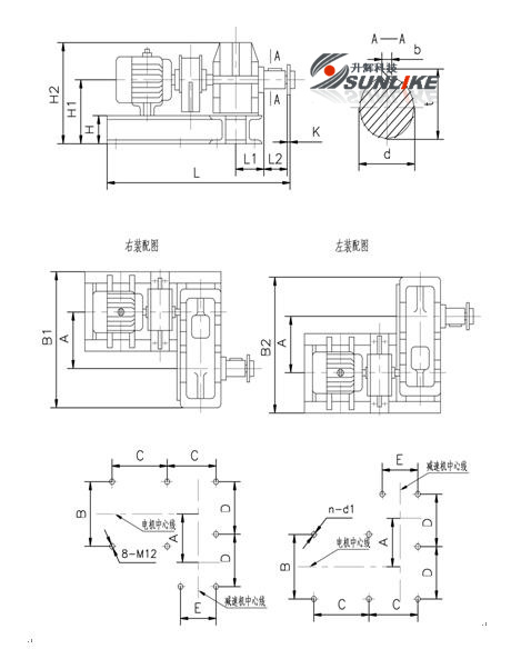 一臺(tái)螺旋機(jī)通常按驅(qū)動(dòng)裝置、頭節(jié)、若干標(biāo)準(zhǔn)中間節(jié),選配中間節(jié),尾節(jié)順序組成,除頭節(jié)機(jī)殼和選配節(jié)外,各節(jié)螺旋及機(jī)殼均具有互換性,在出料端螺旋有清料裝置,安裝時(shí)注意位置。 驅(qū)動(dòng)裝置由一臺(tái)行星擺線針輪減速電機(jī)(或JTC減速機(jī))或選用JZQ型減速機(jī)承擔(dān),在頭節(jié)前部裝有止推軸承,可承受移動(dòng)物料時(shí)而產(chǎn)生的軸向力,頭節(jié)機(jī)殼內(nèi)設(shè)吊軸承及底座,每一中間節(jié)安有一只吊軸承用以支撐螺旋軸,吊軸承內(nèi)裝有向心球軸承(或整體滑動(dòng)軸承),在尾節(jié)后部裝有滾動(dòng)(滑動(dòng))軸承用以支撐螺旋和補(bǔ)充螺旋長(zhǎng)度的誤差,安裝時(shí)應(yīng)從頭部開(kāi)始,順序進(jìn)行。 在總體布置時(shí)還應(yīng)注意,不要使底座和出料口布置在機(jī)殼接頭的法蘭處,進(jìn)料口也不應(yīng)布置在吊軸承的上方,如果因?yàn)殚_(kāi)出料口影響底座而安排不能遵循本原則時(shí),使用單位應(yīng)繪制螺旋機(jī)總圖。 四、減速機(jī)選用JZQ型的驅(qū)動(dòng)裝置