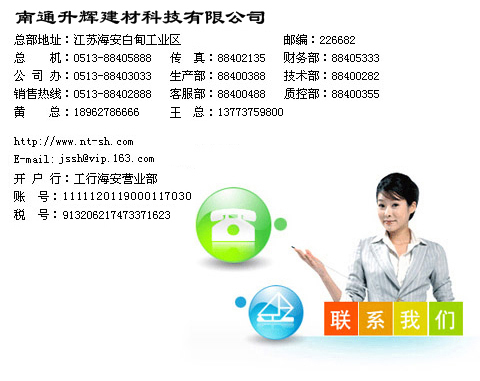 Copyright 2014 南通升輝建材科技有限公司 董事長(zhǎng): 黃輝 18962786666 聯(lián)系人: 王總 13773759800